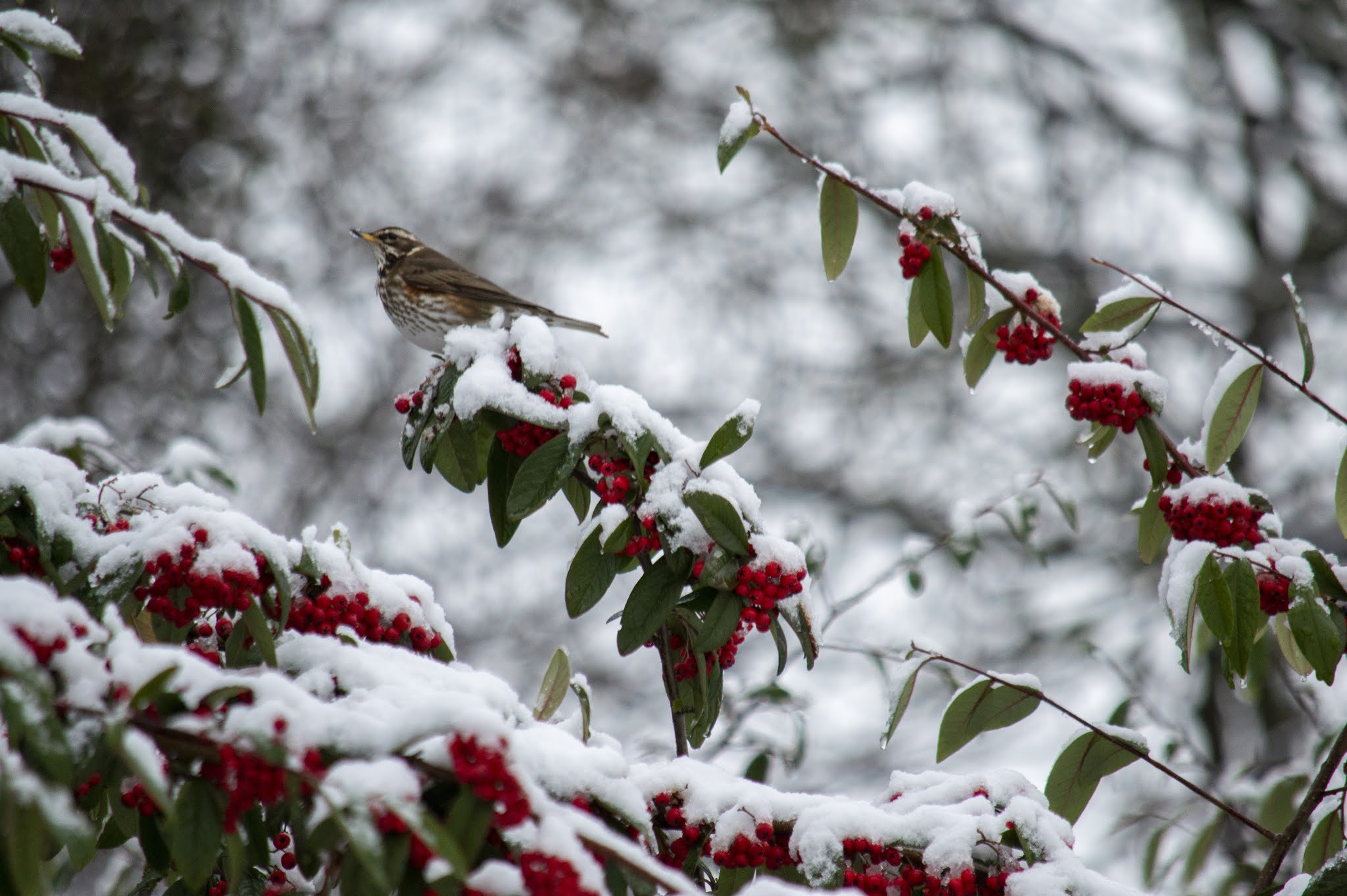 There was the first snow of winter on Tuesday morning and I went out for a walk and to see if I could maybe add a Fieldfare to the list before the end of the year - I didn't but did see plenty of Redwing, which until the past week or so had been few and far between. One did briefly land in our Laburnum on Christmas Eve.
